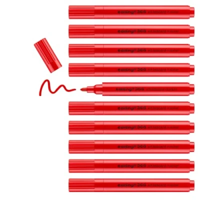 AmazonSlim, handy whiteboard pen for whiteboards; the ink dries quickly and is easy to dry wipe without trace from whiteboards made of glass, enamel or melamine The package contains 10 whiteboard markers pen in red The whiteboard marker ink is lightfast and quick-drying The round tip whiteboard markers are ideal for expressive symbols, images and graphics on whiteboards or flipchart paper, in meetings or for everyday office use The marker is available in the colours black, red, blue and green