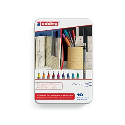 edding 55 fineliner set of 10 bright colours 0.3 mm nib colour pen for writing, drawing, underlining, illustrating children and adults, at school in the home or office