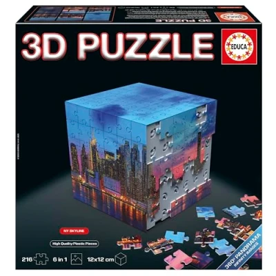 Educa NY Skyline Panorama 3D Puzzle Challenge Cube with 216 Pieces Structure Assembled Base Covered by 6 36 Piece Puzzles Ages 8+ (20335)