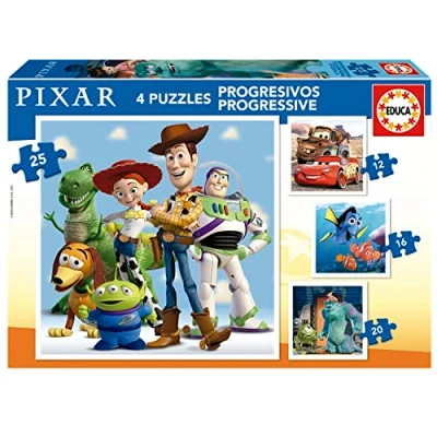 Educa Pixar progressive Set of 4 puzzles for Children from 12 to 25 pieces. Measure Once assembled: 16 x cm. Made Large pieces Perfectly finished. +3 Years (19681)