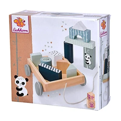 Panda Construction Trolley - The 12 piece construction trolley measures 18 x 17.5 cm and acts as a pull toy and building kit for interlocking blocks in different shapes and colors. Panda can be easily pulled behind the rope Pushing, plugging, building the car with different elements not only allows you to drive, build and stop, but also promotes fine motor skills and understanding of shape and color Quality made in Germany thanks to meticulous corners and rounded edges, materials free from harmful substances and plastinths and quality control, we guarantee high-quality toys Safe: We only use harmless water-based paints for colouring. All wooden toys are regularly tested by independent testing institutes Eichhorn - Wooden toys with tradition - we have been producing quality wooden toys for over 70 years. Educational value, our products promote fine motor skills and creativity from early childhood I combi feeling, stacking, pushing and screwing, Manufacturer: Eichhorn