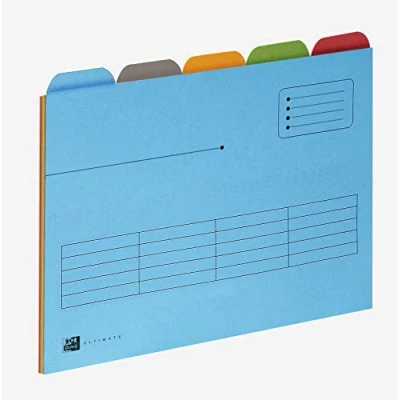 Dimensions: 315 x 240 mm Extra durable 240gsm manila reinforced with cotton fibre Tabbed in five positions for individual or sequenced indexing - ideal for sub-dividing contents of suspension files 240gsm A4 Assorted pack contains 5 each of blue, yellow, grey, green and red