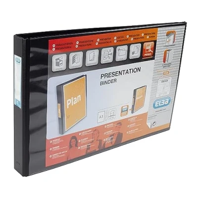 A3 PVC-Covered board ring binder: Quality PVC over strong board for durability Transparent front and spine pocket: the side loading pocket on the front allow for easy personalisation Ideal for training and quality manuals, policy and reference documents 55 mm spine with 30 mm capacity: With a 30 mm capacity this folder will hold up to 300 sheets 4 D-Ring mechanism: Standard 4 D-Ring mechanism to hold loose papers