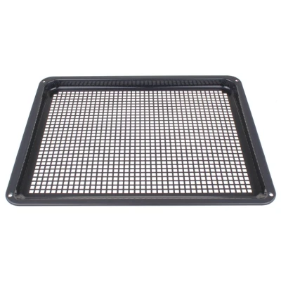 AirFry cooking plateAirFry baking tray for ovenWith the AEG AirFry baking tray you can prepare perfectly crunchy vegetables and crispy fries with less oil. Thanks to the holes in the baking tray, there is optimal air circulation. As a result, you only need very little oil and turning over becomes superfluous.Most important features of the AEG A9OOAF00 AirFry baking tray:Crispy results in one go. No need to turn over Larger portions of bins in one go thanks to improved air circulation Compact and easy to store with your other baking trays and oven accessories Suitable for all AEG, Electrolux & Zanussi ovens with an XXL baking chamber Dimensions (W x D x H): 465 x 385 x 25 mm