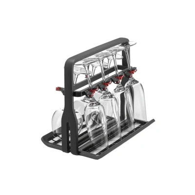 Holds up to 8 stemware For long and short stemware Collapsible for 4 glasses Universal and flexible Fits all 60 cm and 45 cm dishwashers with folding spikes