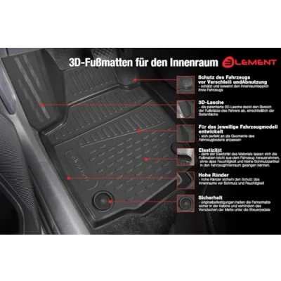 Perfect fit and high quality: tailor-made for your vehicle model DURABLE MATERIALS: Water & Stain Resistant - Easy to Clean Non-slip base for maximum grip. Durable material (TPE) - resistant to wear and tear ALL WEATHER SUITABLE - Ideal for any season - protects against snow, mud and rain. Catch Tray Design - Retains liquids and debris Comfort and safety: raised edge for optimal protection of the vehicle floor. Odourless and environmentally friendly. Patented 3D tab on the driver's mat in the resting area of the left foot. Note: Sample images - shape varies by car type! EASY MAINTENANCE - Quick to clean - just rinse or wipe clean. Stain resistant - stays attractive even after long time use. There is no unpleasant smell