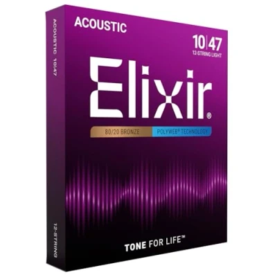 Elixir Strings 80/20 Bronze 12 String Acoustic Guitar w POLYWEB Coating, Light (.010 .047)