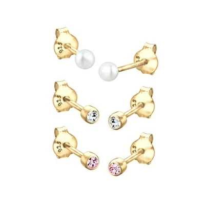 Elli Earrings Stud Set Basic Crystals 925 Sterling Silver, Crystal