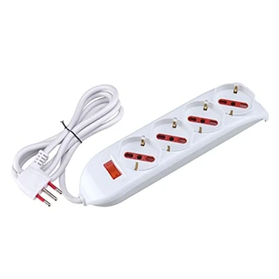 Amazon Emilia series power outlet 4 schuko bivalent sockets 1.5mt cable with small plug 10A with safety switch / limiter Compact, elegant, double coloring white/grey makes them unique