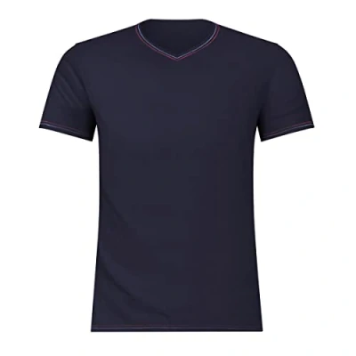 FEF: This t-shirt from the Made in France line is designed and manufactured in factories in southern France. An extra French touch in your wardrobe Comfort: made of 90% cotton and 10% elastane, the t-shirt provides absolute comfort and complete freedom of movement Features: V-neck short sleeve t-shirt in navy blue, seams are visible around the collar and around the sleeves Care instructions: can be washed directly in the washing machine