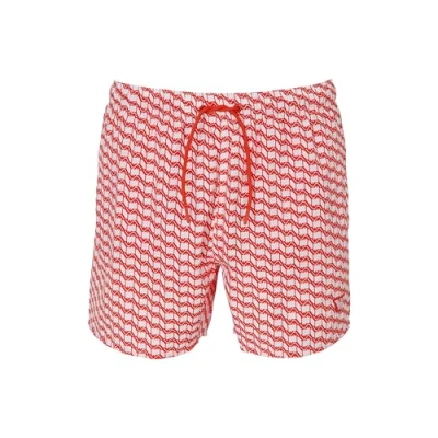 EMPORIO ARMANI Men's Mid Boxer Swim Trunks, White/Red Com, M