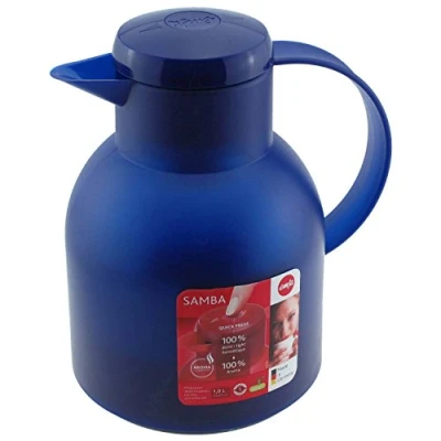 Emsa 504231 Samba Quick Press closure vacuum jug, 1.0 litres, translucent blue