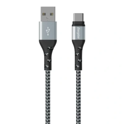 Energizer Reinforced USB A/USB C Cable, 2 m, Black/Silver Braided