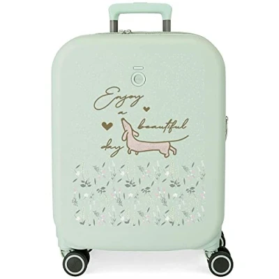 Cabin suitcase 40 cm x 55 cm x 20 cm (wheels and handle included). It has a capacity of 37L and weighs 2.8 kg. Made of ABS, a resistant and light material. Practical interior with two compartments, both with zip closure and rubber bands inside. Four multi-directional swivel dual casters for a comfortable ride, smooth roll and effortless maneuverability. TSA closure integrated into the suitcase to travel safely anywhere in the world and protect your personal belongings. With integrated USB port with cable to connect to an external battery and be able to charge your devices while you travel. Extendable up to 5cm more to expand its capacity.