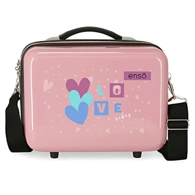 Enso Love Vibes Triple Pencil Case Pink 22 x 12 5 cm Polyester Case, Pink, Makeup Bag, bag