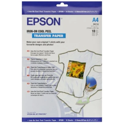 AmazonQuantity 10 For use with Inkjet printers only Epson Cool Peel T-Shirt 210 mm Computer generated images or scanned photographs can be printed, up to 360dpi, directly onto the iron-on transfer sheet and then ironed onto anything cotton Epson Cool Peel T-Shirt - Iron-On Transfer Paper - A4 (210 x 297 mm) - Pack of 10 Computer generated images or scanned photographs can be printed, up to 360dpi, directly onto the iron on transfer sheet and then ironed onto anything cotton