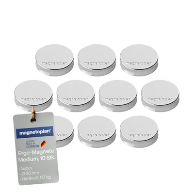 Ergo Magnets, Medium, Diameter 30 mm x 8 mm, Pack of 10 Silver