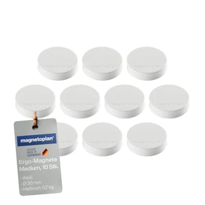 Ergo Magnets, Medium, Diameter 30 mm x 8 mm, Pack of 10 White
