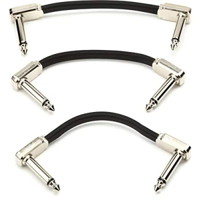 Easily maneuver cables to fit your pedals exactly where you want them with our flat-cable design. Pack of three 3-inch flat ribbon patch cables. Low profile metal connectors and built-in strain relief provide sleek yet durable construction. 99.95 percent oxygen-free copper to resist corrosion. Shielding materials preserve signal with low handling noise, and the durable PVC jacket exterior ensures long-lasting performance.