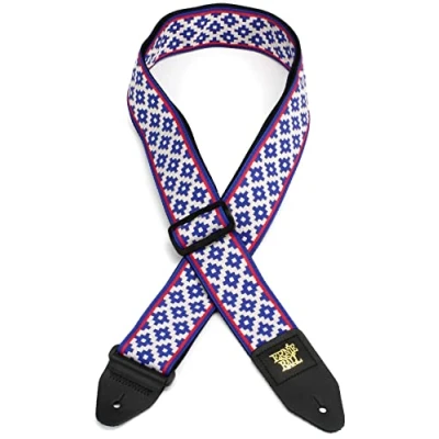 The world's number one polypropylene guitar strap is now available in a variety of stylish jacquard patterns. Durable and comfortable 2" wide polypropylene webbing Adjustable length from 41" to 72" Machine stitched leather ends. Black Delrin buckle and connector for a secure fit.