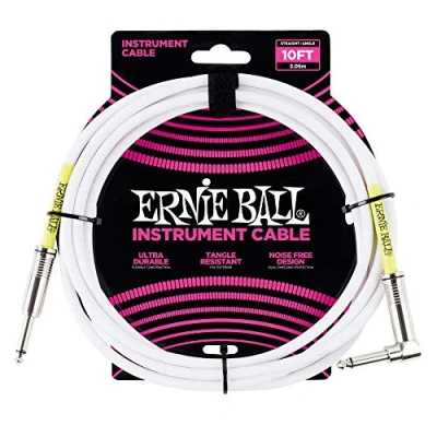 Ernie Ball Instrument Cable, Straight/Angle, 10ft, White (P06049)