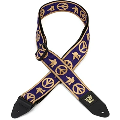 The world's number one polypropylene guitar strap is now available in a wide range of stylish jacquard designs. Peace Love Dove design Adjustable length from 104 to 183 cm. Machine stitched leather ends The polypropylene strap is durable and comfortable.