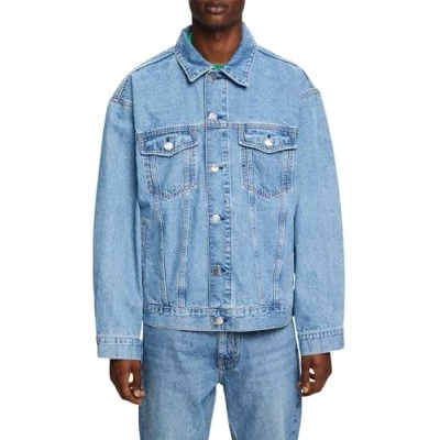 TIMELESS MUST-HAVE The comfortably cut cotton denim trucker jacket features two flap pockets on the front and a clic turn-down collar. With its loose fit, it is the perfect addition to layered looks. Solid cotton denim In the authentic style of the trucker jacket Esprit logo patch on back hem Relaxed fit