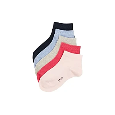 Pack of 5 pairs of ankle socks for boys and girls in an organic cotton soft on the skin; plain pattern, each pair in a different colour to match any outfit; elastic ribbed cuff, designer logo on sole; for toddler and child from size-age 2 to 12 years old Thin and light short socks for children for summer or winter; solid design suited for any occasion, dress or casual looks or to wear at school with a uniform; high-quality construction with reinforced stress zones for an optimum durability Comfortable kids' socks in a short ankle length making them ideal to wear with trainers; low-cut socks with an excellent shape and colour retention even after repeated washing; machine wash 40°C gentle Special knitting techniques adapted to children's feet ensure a high comfort, a excellent slip-free and wrinkle-free fit, a long durability and protect against pressure points Model number: 19054; available in sizes: 23-26 (UK 6-8.5 Ι 2-3 years), 27-30 (UK 9-11.5 Ι 3-6 years), 31-34 (UK 12-2.5 Ι 7-9 years), 35-38 (UK 3-5 Ι 9-12 years) ESPRIT, founded in 1968 in California, is shaped by the 1960's spirit and has a clear philosophy: high-quality, inclusivity and colourful joie de vivre