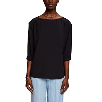 This lightweight crepe blouse with elasticated cuffs enhances your office wardrobe. Lightweight crepe fabric Crew neck with button and keyhole detail at back Short sleeves with elastic cuffs Loose oversized cut