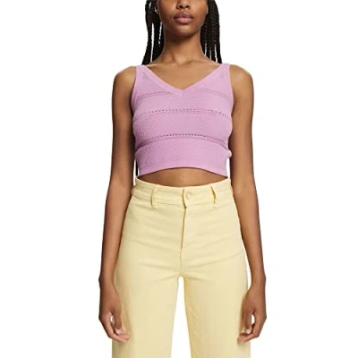 Stylish Sleeveless Design: This ESPRIT women's pullover sweater features a sleek sleeveless design, offering a modern and stylish look for the season Premium Viscose Fabric: Expertly crafted from 100% viscose material, this sweater provides a soft, luxurious feel and comfortable fit for all-day wear V-Neck & Straight Hemline: The flattering V-neck and straight hemline of this pullover sweater create a clean, polished appearance, perfect for both casual and dressier occasions Comfortable Fit & Stretchable Material: With a normal fit and stretchable fabric, this women's sweater offers optimal comfort and ease of movement, allowing you to move freely and confidently Lilac Color & Pull-On Style: This ESPRIT pullover sweater is available in a beautiful lilac color and features a convenient pull-on closure, making it easy to wear and remove