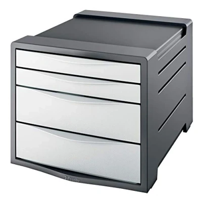 Four-drawer VIVIDA White cabinet with a matte finish for organising and storing A4 size documents, pens, makeup, medicine or remote controls for home or office use Individual drawer height: 4.3 cm, drawers have finger holes on the front making them easy to open and close and space for a label, stop mechanism prevents drawers from falling out Mix and match with other products from the Esselte Europost and VIVIDA ranges for the an ideal office look Stack up to three on top of each other to save space, rubber feet on bottom keep cabinet from slipping, made of durable plastic for a elegent look that lasts, smooth, easy to clean surface Contents: One Esselte A4 Drawer Cabinet, 4 Drawer Organiser, dimensions (W x H x D): 28.5 x 37.2 x 24.5 cm, weight: 1.52 kg, material(s): Plastic, colour: VIVIDA White, VIVIDA range, 623959