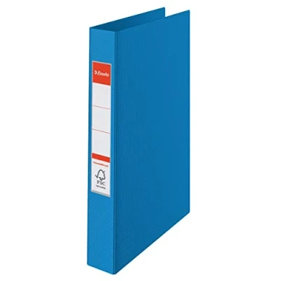 Amazon1 x 4 ring binder, blue, 42 mm wide spine, holds up to 190 A4 (80 gsm) sheets, ideal for the transportation and organisation of documents, meetings and school Quick and easy identification of content thanks to spine label Mix and match with other products from the LEITZ Vivida range Embossed and patterned finish, wipe clean flexible plastic surface, durable and tear resistant, 25 mm ring diameter, four round ring mechanism for secure transportation of documents Esselte ring binder, blue, vivida, 14452, W x H x D: 42 x 318 x 255 mm, 260 g, A4
