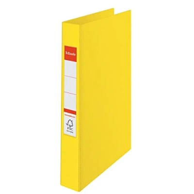 Amazon1 x 4 ring binder, yellow, 42 mm wide spine, holds up to 190 A4 (80 gsm) sheets, ideal for the transportation and organisation of documents, meetings and school Quick and easy identification of content thanks to spine label Mix and match with other products from the LEITZ Vivida range Embossed and patterned finish, wipe clean flexible plastic surface, durable and tear resistant, 25 mm ring diameter, four round ring mechanism for secure transportation of documents Esselte ring binder, yellow, vivida, 14458, W x H x D: 42 x 318 x 255 mm, 290 g, A4