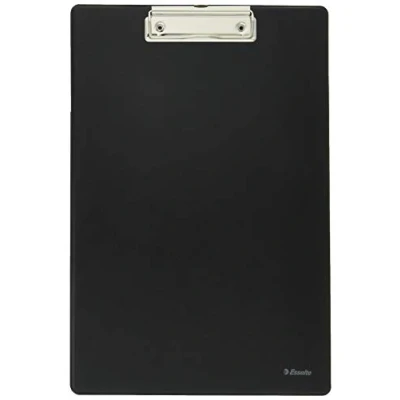 AmazonBlack clipboard with a glossy finish, contemporary design with round edges, holds up to 200 A4 sheets, easy to handle ergonomic shape, for home and office use Strong metal clip with rubber grip on top holds and secures papers, hanging hook for storage, easy to transport loose documents on the move Mix and match with other Esselte products High-quality plastic for an elegant look that lasts, easy to clean, smooth surface Contents: One Esselte A4 clipboard, dimensions: (W x H x D): 232 x 3 x 349 mm, colour: Black, rigid plastic, 56057