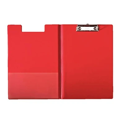 AmazonRed clipfolder with cover with a glossy finish, contemporary design with round edges, holds up to 200 A4 sheets, easy to handle ergonomic shape, for home and office use Strong metal clip with rubber grip on top holds and secures papers, pocket on the inside for loose documents, hanging hook and slot in the back for a pen or pencil, easy to transport loose documents on the move Mix and match with other Esselte products High-quality plastic for an elegant look that lasts, easy to clean, smooth surface, practical cover keeps pages safe and clean while not in use Contents: One Esselte A4 clipfolder with cover, dimensions: (W x H x D): 242 x 3 x 349 mm, colour: Red, 56043