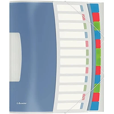 AmazonA4 translucent white divider book, expands from 1.5 to 3 cm, holds up to 200 A4 sheets (80 gsm), ideal for the transportation and organisation of documents for school or office use Integrated index with 12 multi-coloured labels to clearly identify contents, three flaps inside stop loose pages falling out, easy to write on labels, elastic closure is quick to open and keeps documents safe Mix and match with other products from the Esselte VIVIDA range Bold VIVIDA design, wipe-clean plastic surface, durable and tear resistant Contents: One Esselte A4 Divider Book, Translucent, dimensions (W x H x D): 26.6 x 2 x 32 cm, material(s): Flexible plastic, colour: Translucent white, 624030