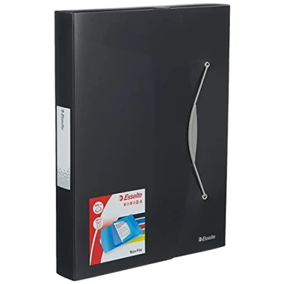 Esselte Box File, Holds up to 350 A4 Sheets, Elastic Closure, Flexible Plastic, Translucent black, VIVIDA Range