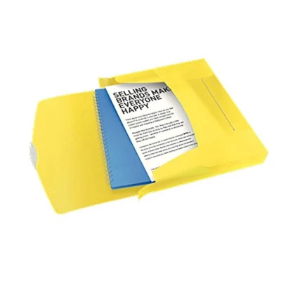 Amazon1x multi-use box file in translucent yellow, holds up to 350 A4 sheets (80 gsm), ideal for the transportation and organisation of documents and papers, used for the office and school Label on spine for quick and easy identification of contents Combine with other products from the Esselte VIVIDA range for an elegant office look Sturdy plastic cover with embossed pattern, wipe clean surface, durable and tear resistant, elastic band closure for keeping documents safe Flexible plastic, translucent yellow, 624052, W x H x D: 25.3 x 4.7 x 33 cm, weight: 160 g