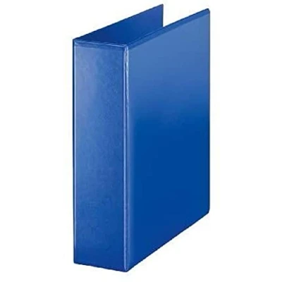 Presentation binder in blue, leather style, 8 cm spine, A4, will carry 580 (80 gsm) sheets Two outside pockets for customisation Standard 4 D Ring mechanism for easy turning of single sheets, 5 cm ring diameter FSC certified, durable and scratch resistant cover Esselte presentation ring binder, blue, 49718, W x H x D: 86 x 319 x 288 mm, 580 g, A4