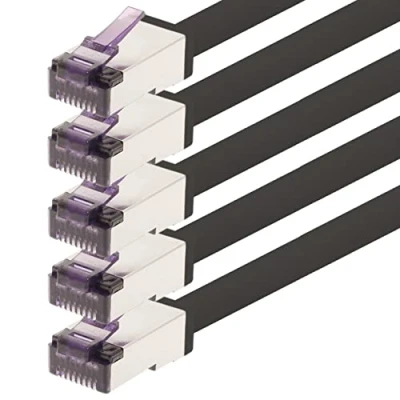 1aTTack - 10m - black - 5 pieces - CAT6a SFTP Superflex network cable - Lanka cable - Ethernet cable - flexible outer jacket - soft PVC - 2x RJ45 plugs - copper inner conductor (CU) - up to 10Gbit/s ULTRA-FAST SPEED: An above-average transmission speed and a stable and secure connection are guaranteed by an operating frequency of up to 600MHz and enable fast and effective work. The network cable patch cable Ethernet cable is suitable for all internet speeds. HIGH QUALITY: The high-quality copper inner conductors are very robust and durable and ensure safe handling. In addition, the network cable is double shielded and has a kink protection sleeve with gold-plated contacts for maximum performance during transmission. A REAL ALL-ROUNDER: The high-quality Ethernet cable is versatile and is suitable for connecting Fritz!Box, notebook, laptop, computer, game console, DSL modem, switch, router, network socket or patch panel and for gigabit networks of 10, 100, 1000, 10000 Mbits. HIGH PRODUCT SAFETY: We at Freiwerk GmbH have focused on a high quality standard so that you get a safe and durable raw cable that impresses with fast data transmission without interference and therefore does not have a negative impact on the signal quality. READY TO USE: The network cable is pre-assembled with 2 x RJ45 connectors and can be used immediately. Plug in and get started.