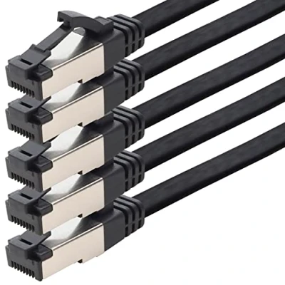 Ethernet cable Cat8 CAT 8 flat 40Gb/s 5m Network, patch, Lan & Internet 5x Black