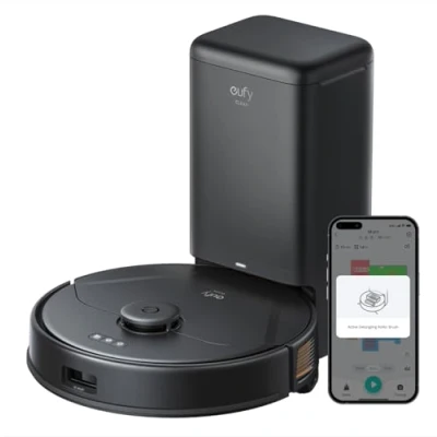 eufy Clean X8 Pro Auto Dump Station for Robot Vacuum Cleaner, Twin Turbine Power 2 x 4000 Pa, Active Detangling Roller Brush and iPath Laser Navigation Pet Hair on Carpets