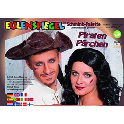 What would a costume be without the right makeup? With the make-up set pirate couples, from Eulenspiegel, you are perfectly prepared for the foolish time Included are the colours pearlescent pharaoh gold, white, black, light red, light brown, dark brown. You will also receive a brush and a complete step-by-step illustration The pirate couple make-up set is vegan, dermatologically tested and is sufficient for approx. 60 masks Applied paints are easy to remove with soap and water Conjure up a variety of make-up faces and let your imagination run wild