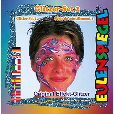 The glitter motif set 2, from Eulenspiegel, is the ideal addition to your make-up colours The set includes 2g of cosmetic glitter in the colours Golden Orange, Emerald Green, Royal Red and Royal Blue The high-quality scattering glitter is flexible to apply and refines any mask thanks to sharp contours and brilliant surfaces It consists of tiny colour pigments enclosed in a plastic case and delight with their great wealth of nuances Ideal for carnival, theme parties, Halloween or other events
