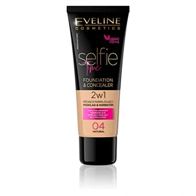 Eveline Cosmetics Selfie Time Hydrating Concealer & Foundation No 04 Natural Restorative Coverage, Hyaluronic Acid, Vitamin E, Blue Algae 30 ml