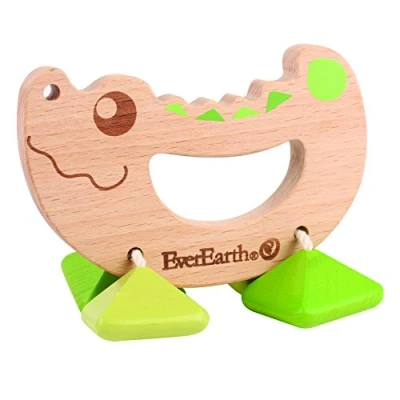 The cute rattle toy from EverEarth makes the hearts of all animal fans beat faster. The wooden toy is designed in the shape of a crocodile and has a small gripping hole for children's tiny hands. This product has the following dimensions: 11 x 6.6 x 7.7 cm This product trains the following learning fields of children: thinking, stimulating perceptions, hand-eye coordination, recognizing shapes and fine motor skills The wooden toys from EverEarth are made from 100% FSC certified wood (C106741) and meet the strict quality requirements of the EU directive EN 71. This toy is suitable for children over 6 months, Manufacturer: EverEarth