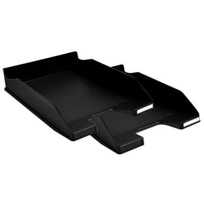 Features: 2 letter trays made of high-quality plastic, for DIN A4 and A4+ formats, height: 6.5 cm Can be stacked vertically and stairs The storage capacity can be increased by spacers. Includes label holder for labelling Colour: black, blue angel certified