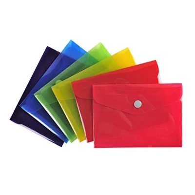 B7 in size Made from 0.2 mm translucent Polypropylene material Press stud closure Pack of 30 in an assortment of colours Pack of 30 in an assortment of colours (colour quantity may vary per pack)