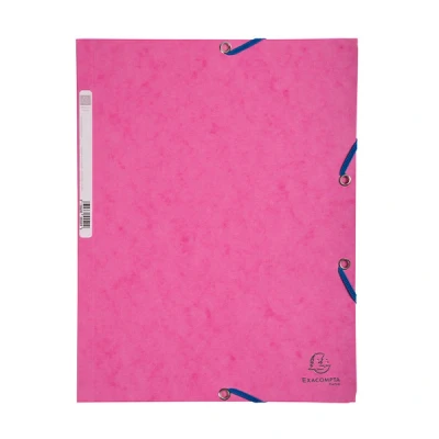 Exacompta Ref 55520SE Elasticated 3 Flap Folders Suitable for Holding A4 Documents, 400gsm Glossy Card, Spine Label Identification Pink (Single)