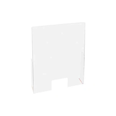 Totally hermetic material to prevent the spread of viruses or microbes. This clear partition has a very high degree of transparency and it is made from rigid plastic and is impact and UV resistant Stand alone model, H95cm x L58cm, ideal for counter dividers, office desks, shops and reception areas to shield staff, keep them safe and enable them to social distance There is a 15cm open window at the bottom of the PPE screen for the passage of documents, payment terminals, change etc Double sided adhesive tape included to fix in place, the countertop can be fixed with screws (screws and dowels are not included) Easy to clean and sanitise. Made in Europe and comes with a 5 year warranty